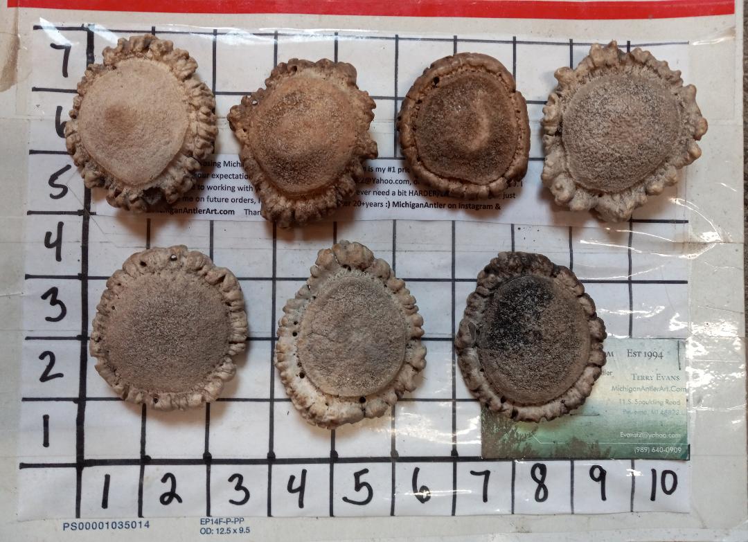 7 Random Elk crowns in the 2 to 2.5 inch wide May have some minor damage at this price. Fun for crafting Tumbled to clean