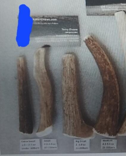 Dog Size – Under 10lbs Antler Weight -1.5-2.1 ounce each Length – 4.5-5 inches As listed are medium to medium hard. If you need a tad harder or lighter please add a short note with purchase 🙂 Many Thanks, Terry Michigan Antler Since 1994