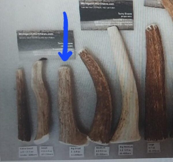 20 to 30 lbers – Big Small/Small Medium Antler Chew- (3 to 3.6 oz) – NICE SIZE/Favorite Here