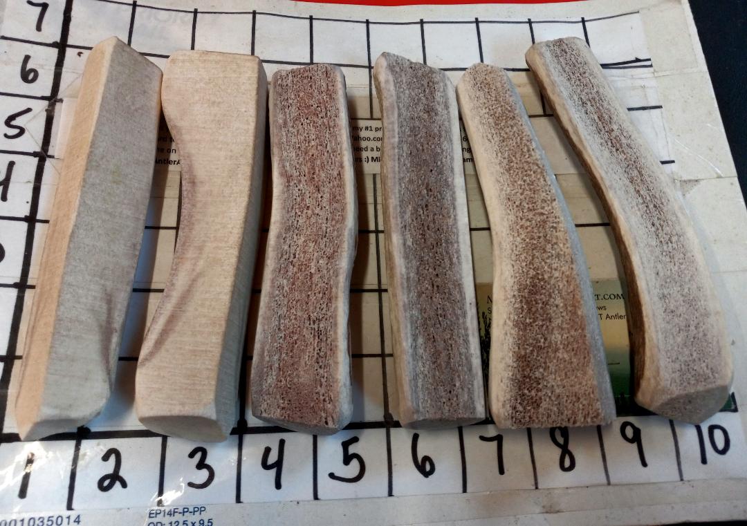 This a fun 6 pack of Moose and Elk. These will be a nice mix of Medium strength to harder 🙂 Looking for 1.3 pounds here – Nice Deal 🙂 Good for dogs under 35 pounds as listed, OPTIONS BELOW. Each Chew will average 3 ounces each 🙂 –Will be a cool mix of splits, quarter splits and Moose Flats in the 5 to 6 inch length and Fat Hot Dog around 🙂 Things you could request if your dog is not in the 15-35lb range:
