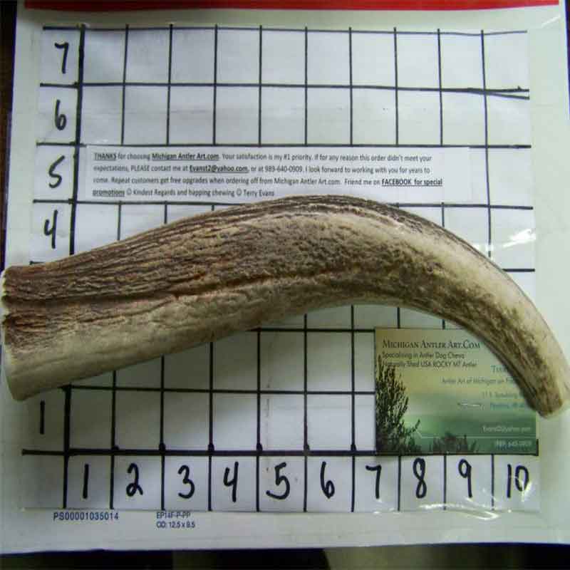 One 12″ TROPHY JUMBO ELK CHEW – Harder Inner Core. Keep in the mind when i go this big, it is tough to find extra hard so many are medium hard. Tend to be hard outer with great core. If your looking for an extra hard, see my Large Elk Tine on my Large chew tab it is more constricted so harder overall. 12″ Long 5″ Around Will look for a fuller size tine than the large on previous page. A harder elk tine from the largest elk in the world.. trophy class. If you Need the Hardest Chew, Please add a note.